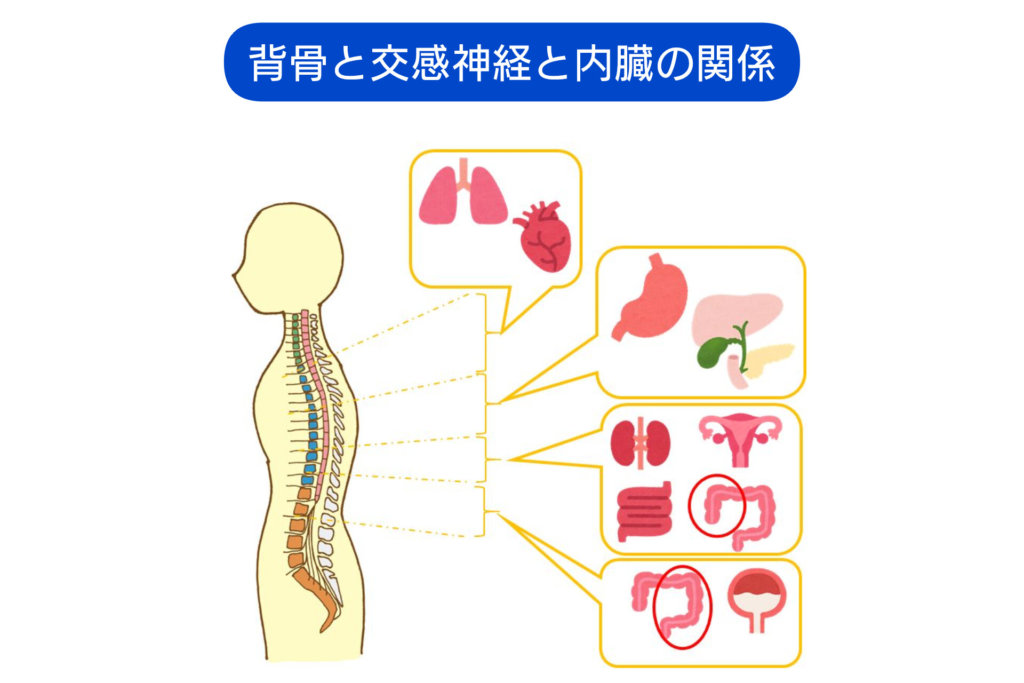 そして、逆もまた然りで、内臓に問題があれば、その内臓に交感神経を出している背骨も歪みやすくなります。