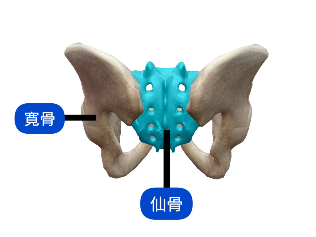 仙骨とは骨盤の真ん中にある骨で、その両側に蝶々の羽のように位置している骨は寛骨と言います。